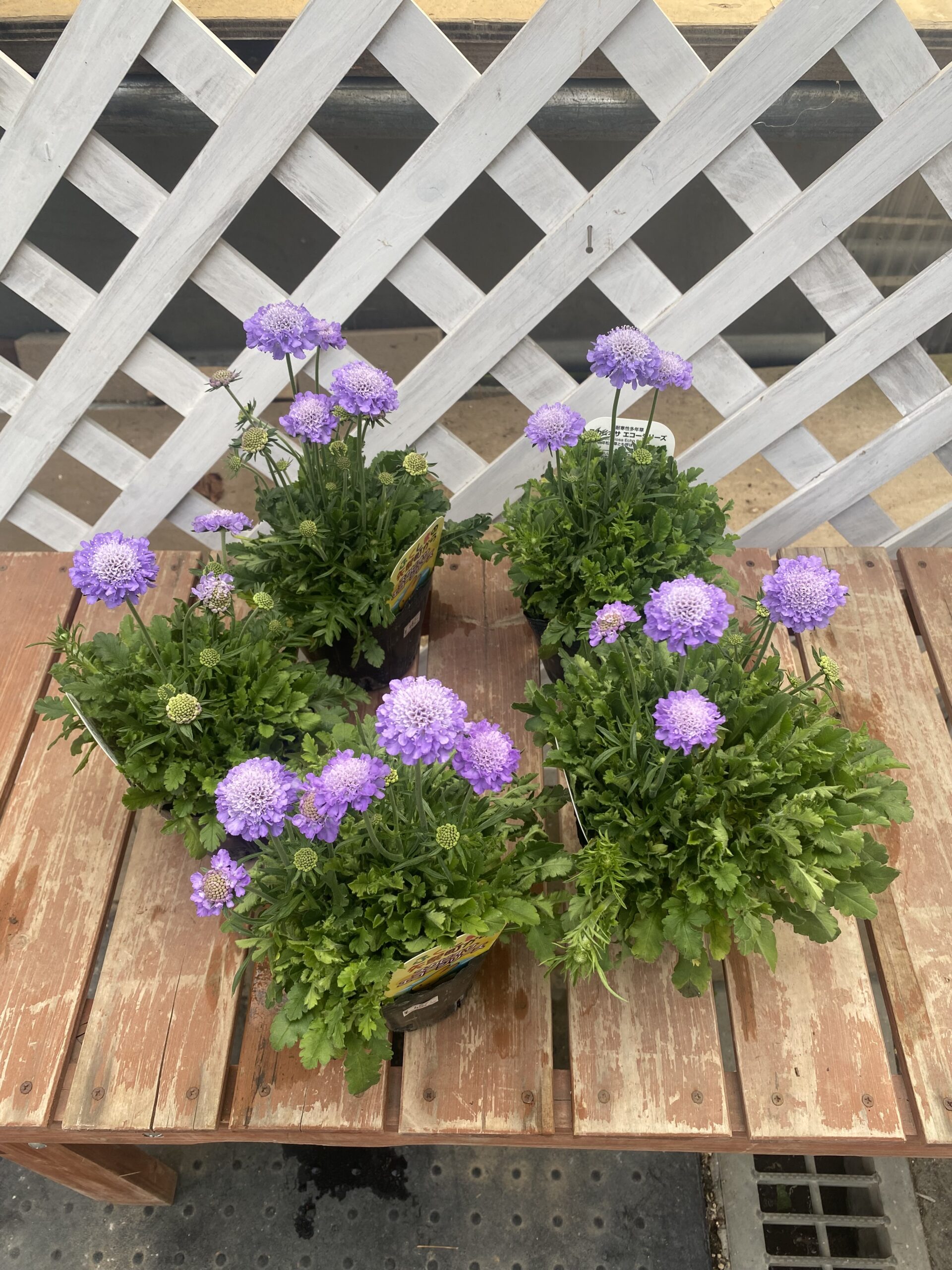 スカビオサエコーブルー・・爽やかで優しい印象。次々に花を咲かせます。多年草。