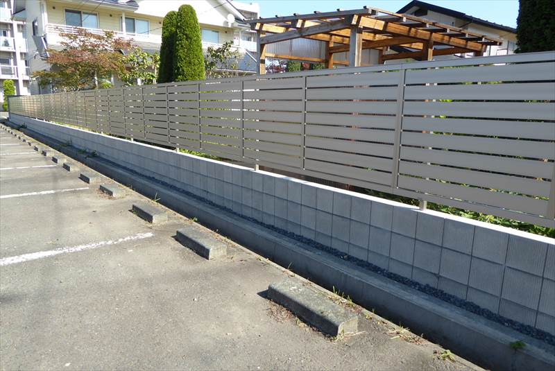 軽量で耐久性が高く腐食しにくいので、メンテナンスフリーです。目隠し率、採光率、通風率から選択し、フェンスの高さは0.6m~3.0mまであります。目隠し率は数値が高いほど効果が上がります。90%以上だと目隠しに適です。1.6m以上のフェンスをご希望の場合は多段型2段フェンスとなりますが、ブロック積み(1m)の上部にフェンス(1m)の施工も可能です。人気商品は、LIXIL・フェンスAB・YS3型・横ラインとなります。